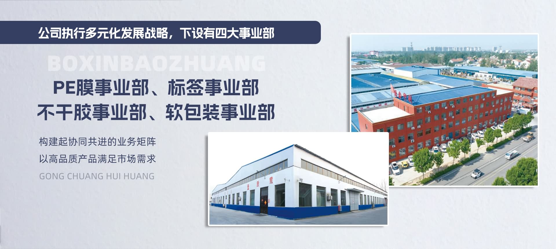 我們有決心、有信心、有能力,用我們的智慧和辛勞,推動企業(yè)快捷、健康發(fā)展,為客戶更好的完美服務(wù),達到雙贏。我們堅信:博鑫包裝股份有限公司在我們所有優(yōu)秀員工的不斷努力下和社會各界朋友的支持和關(guān)懷下,一定會取得更大的進步。歡迎新老朋友來公司做客指導(dǎo)工作。